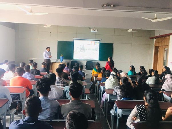 After this session, brief information about the course diploma and degree in pharmacy was given by Dr. Abhinanadan R. Patil, Associate Professor, such as the infrastructure of the college, tuition fees, scope of pharmacy, importance of pharma education, training and placement details, etc. He also explained information regarding campus drives, hospital visits, industrial visits, guest lectures, conferences, etc.